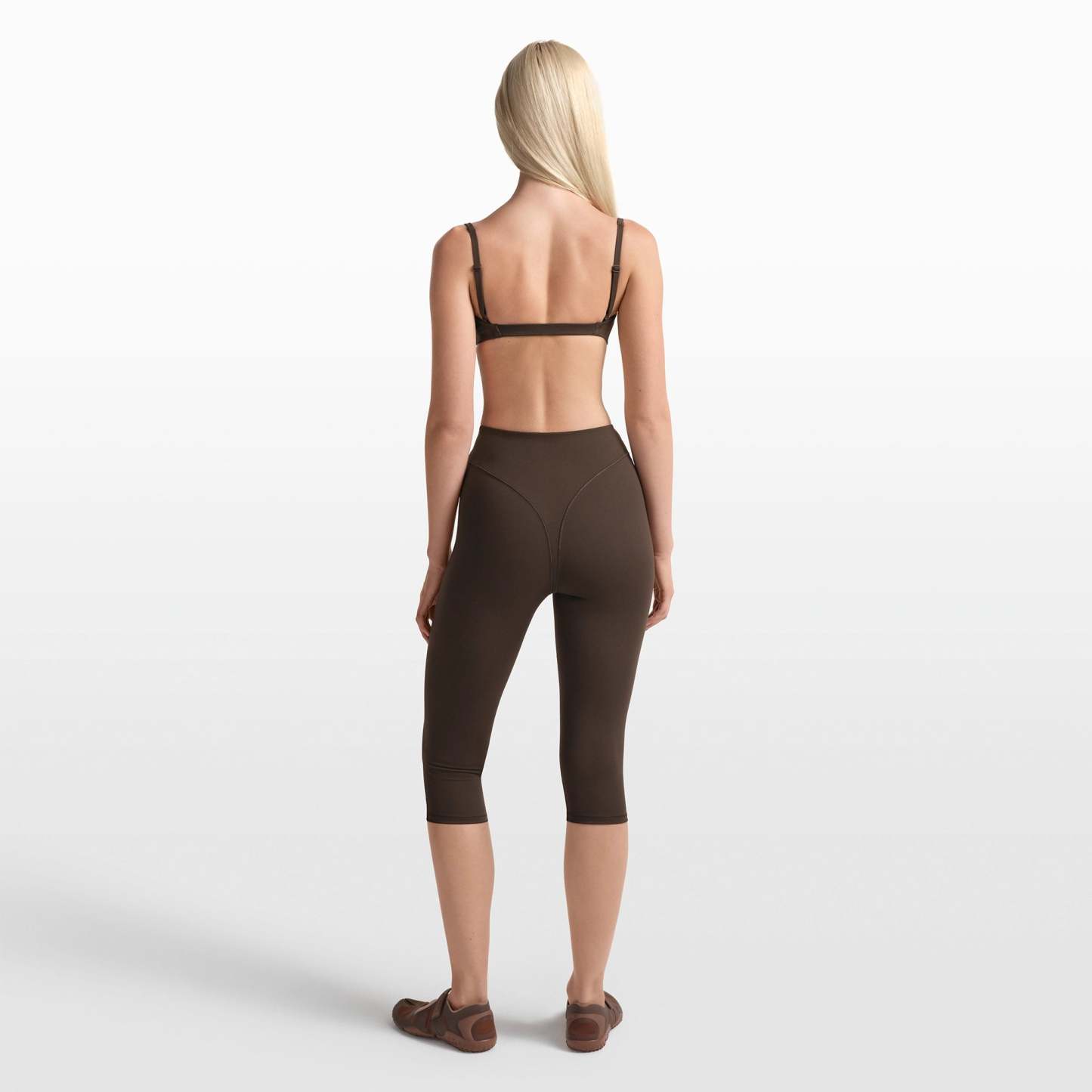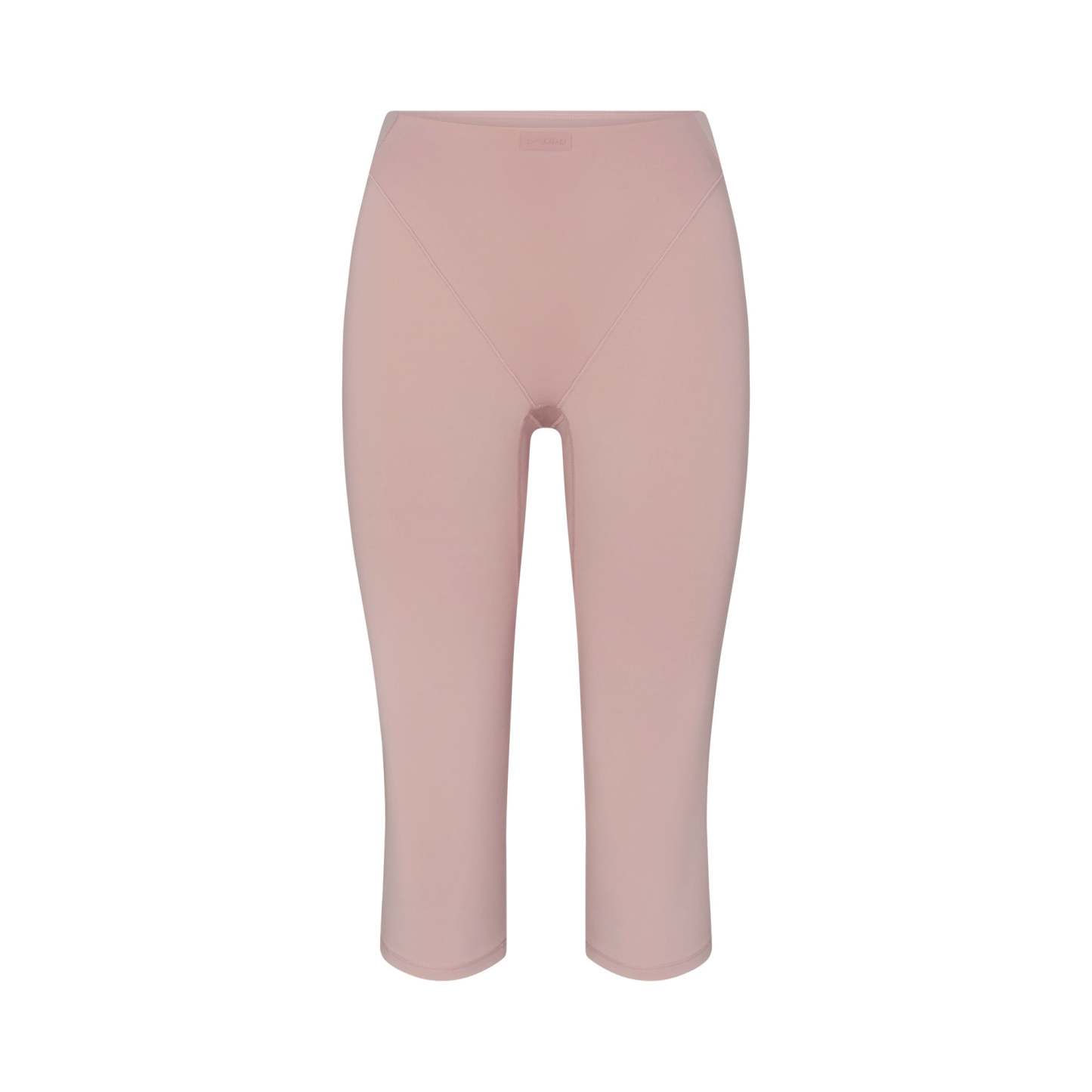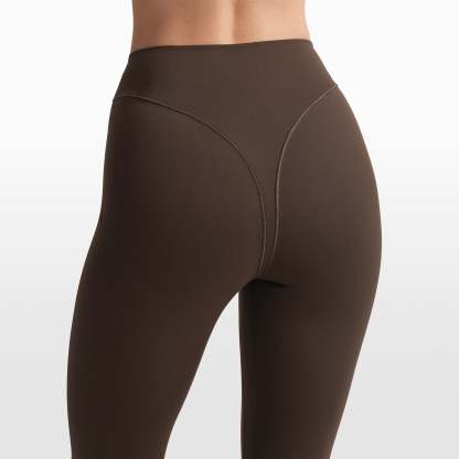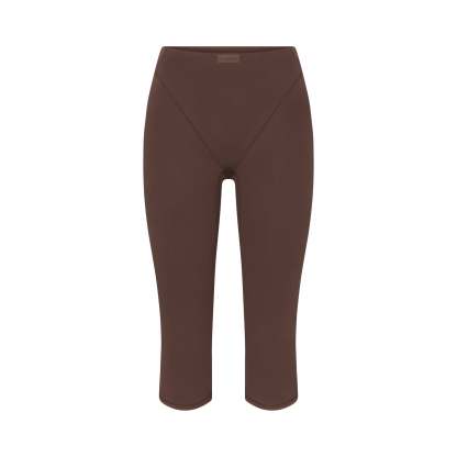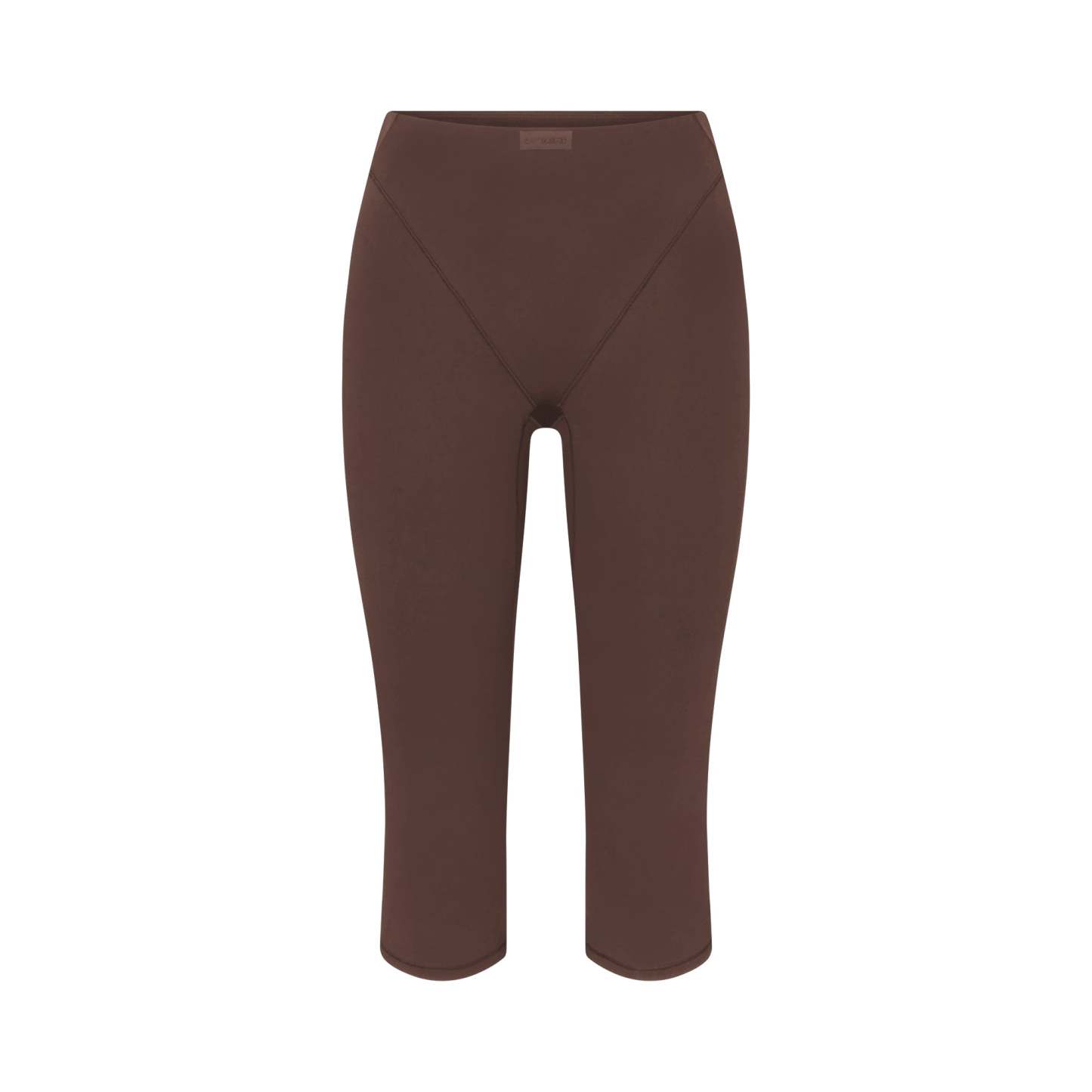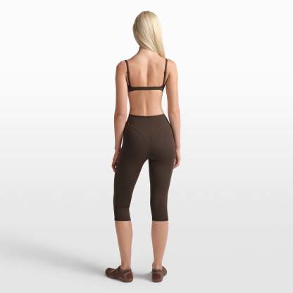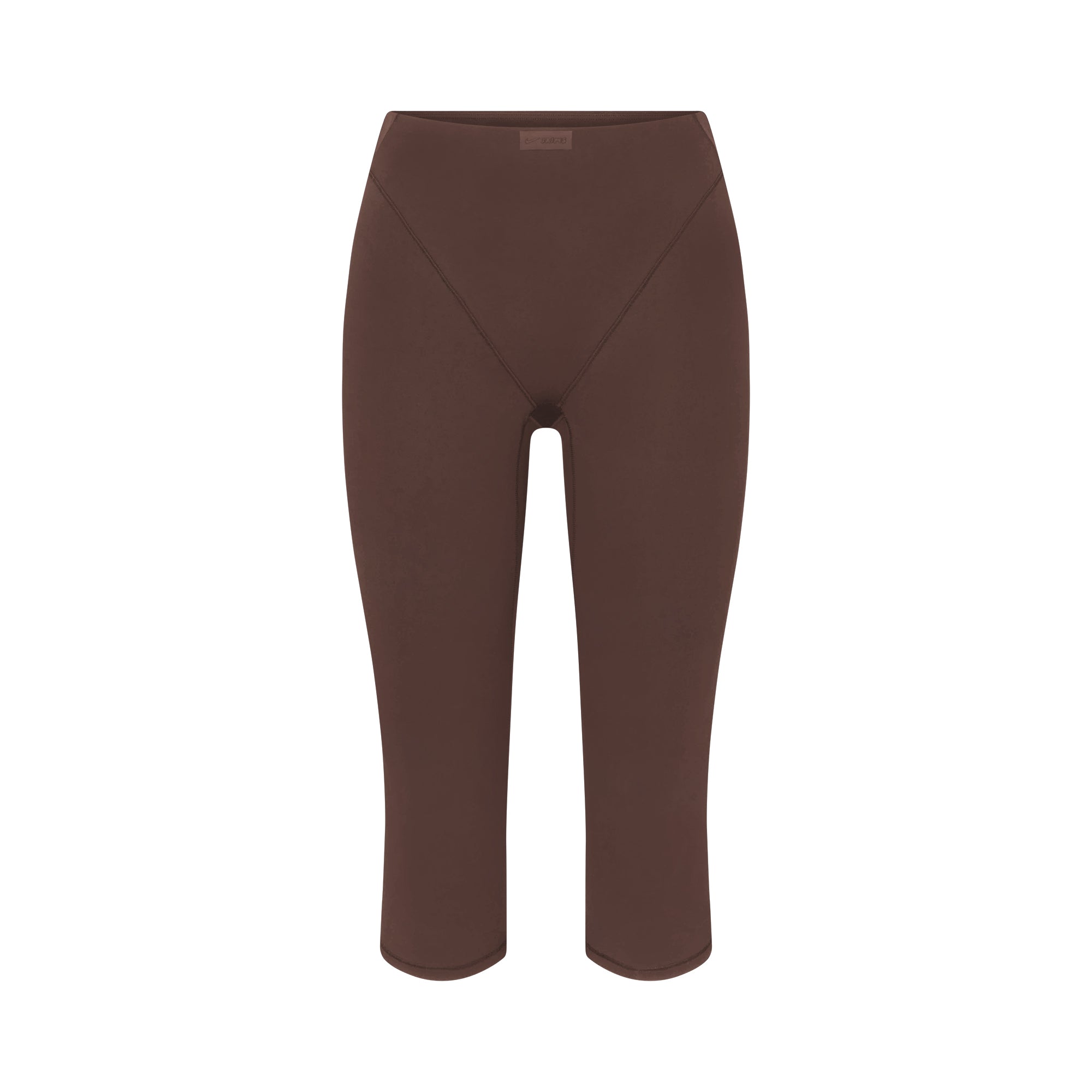 High-waisted, Double layered v-panel, Side dart detail, Thong back detail, Cotton gusset, Fits tight to body, Crop length, Inseam: 17"