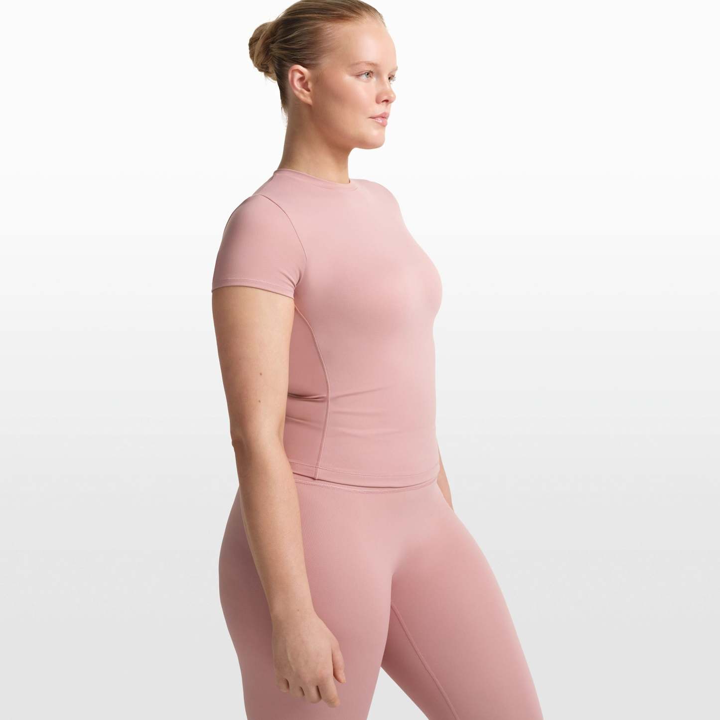 This sleek baby tee features built-in spacer pads, underbust elastic for seamless support, a smooth no-show back, and Dri-FIT™ technology to keep you comfortable and dry all day.