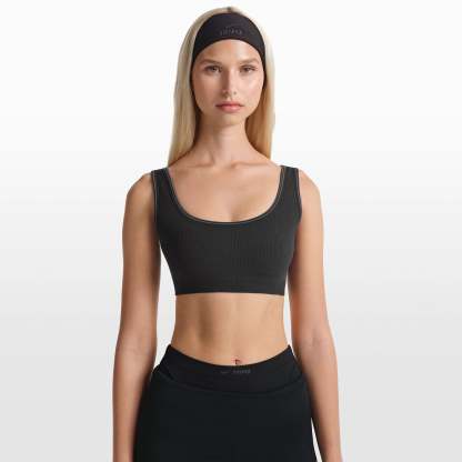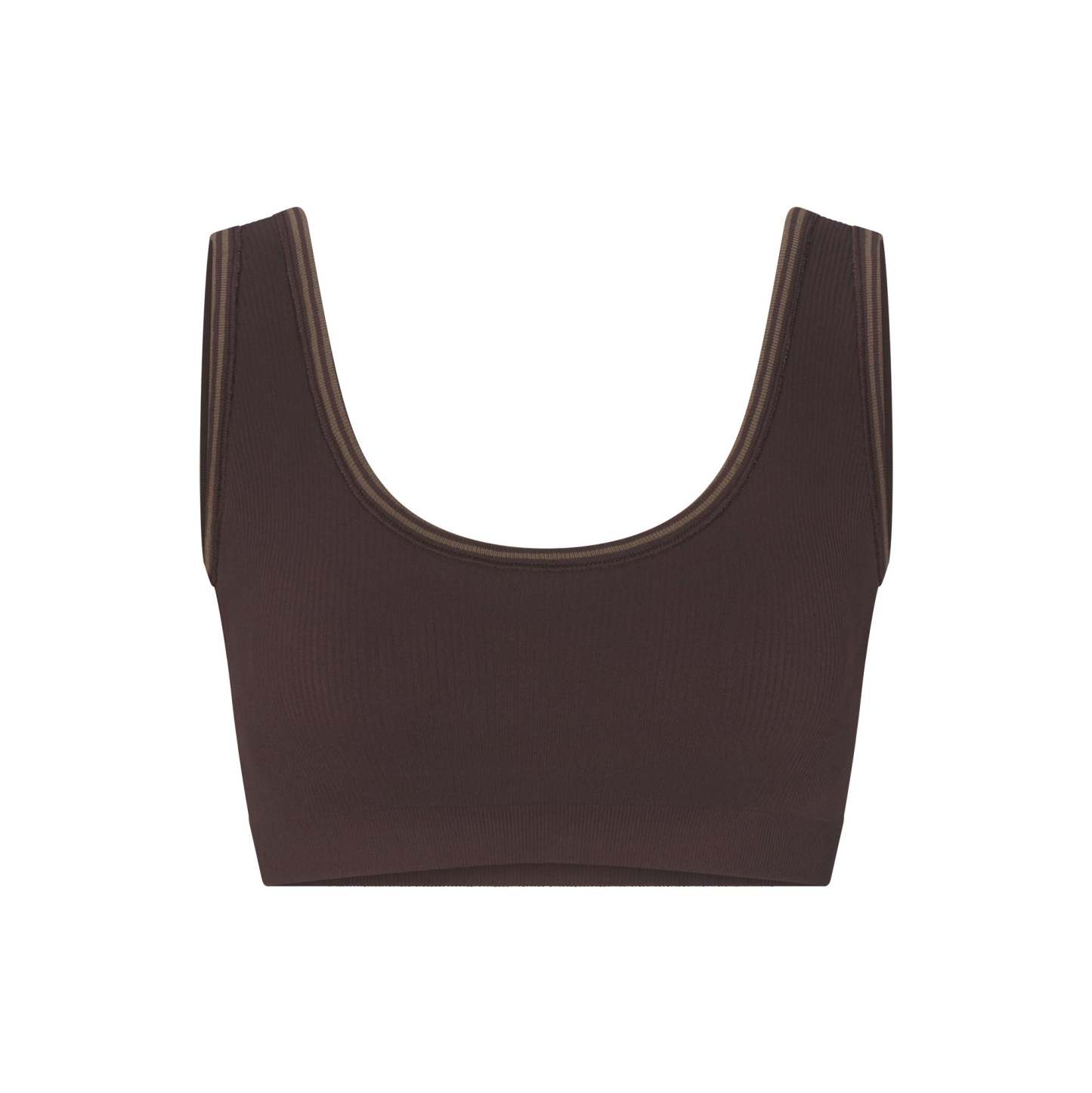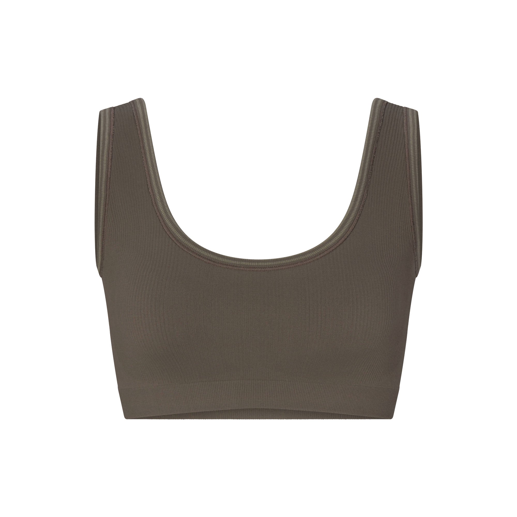 A best selling staple in our new Ribbed Seamless fabric, with a vintage-inspired finish. Ideal for studio workouts, this moisture-wicking scoop bra offers light support. A foam spacer pad molds to your body for lightweight coverage.