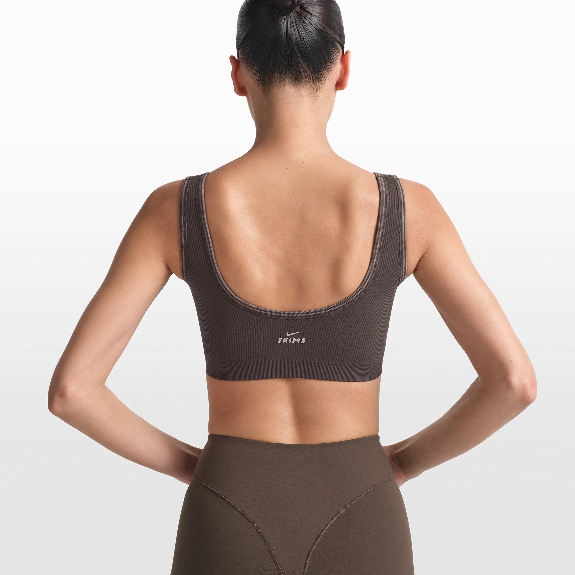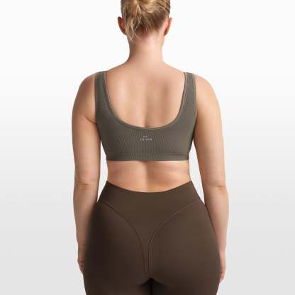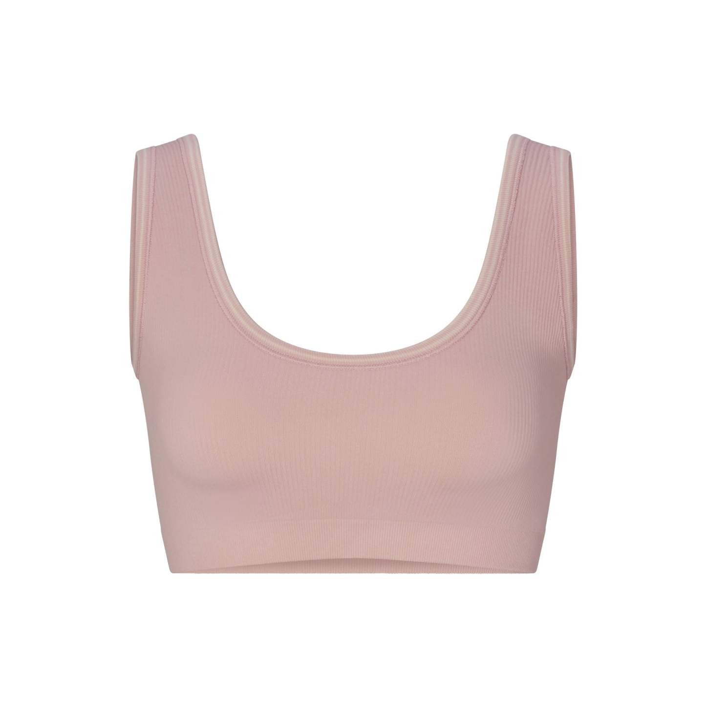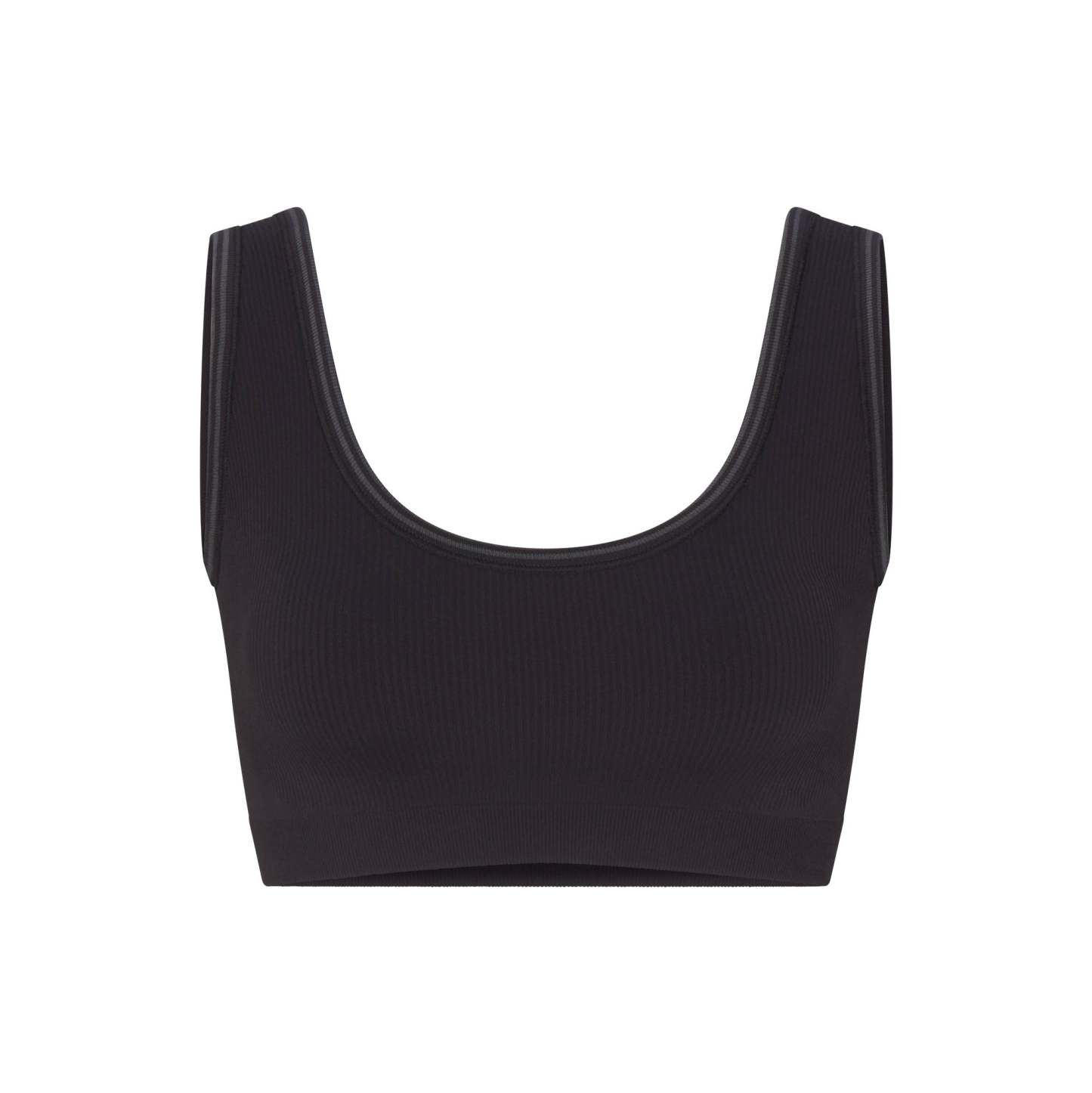 A best selling staple in our new Ribbed Seamless fabric, with a vintage-inspired finish. Ideal for studio workouts, this moisture-wicking scoop bra offers light support. A foam spacer pad molds to your body for lightweight coverage.