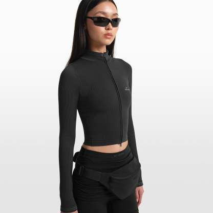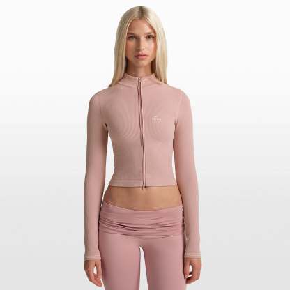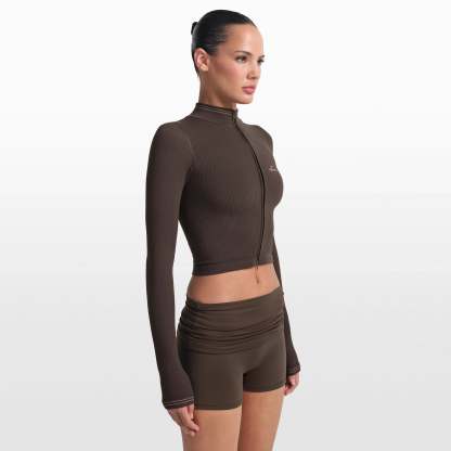 The lightweight layer you’ll never want to take off. With a cropped silhouette, this jacket is crafted in our new vintage-inspired Ribbed Seamless fabric. Features a two-way zipper for flexible styling.
