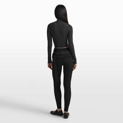 High neck band, Sleeve cuffs and body band, Contrast stripe detail at neck & sleeve edge, Double ended zipper front, Tight to body fit, Crop length, Length 18"